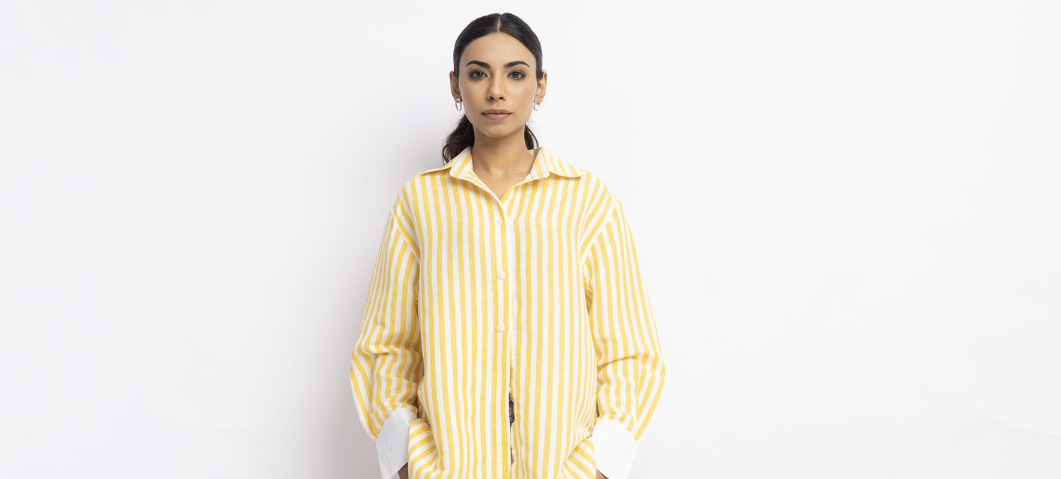 Lemon Yellow Linen Striped Shirt