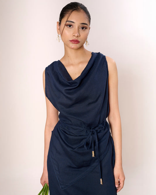Navy Cowl neck Draped top