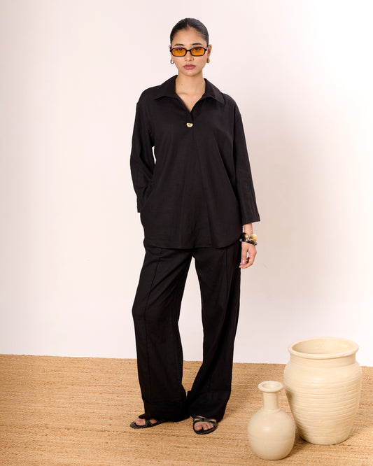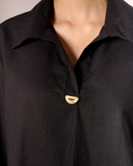 Black Oversized Linen Pullover Shirt