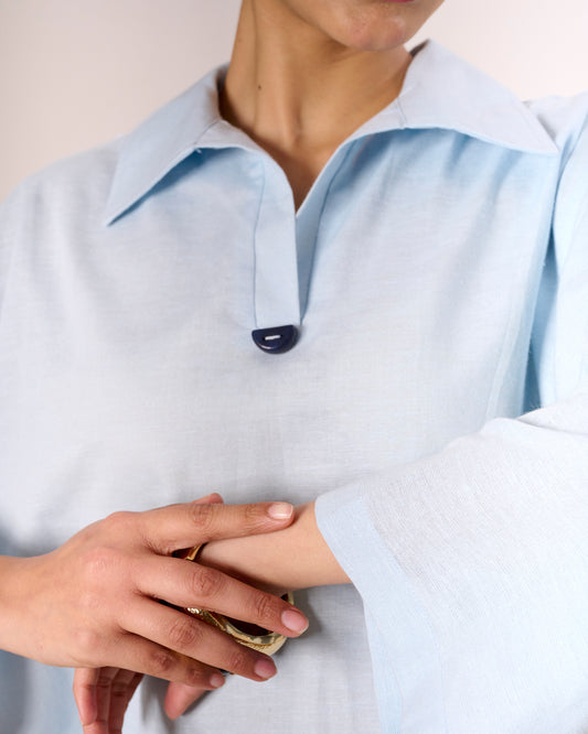 Powder blue Oversized Linen Pullover Shirt