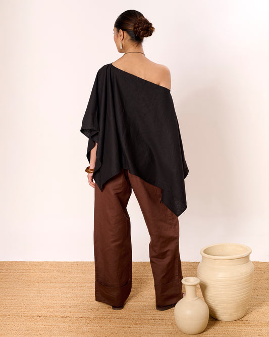 Black linen poncho top