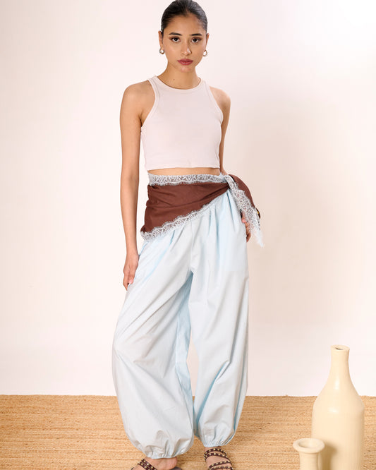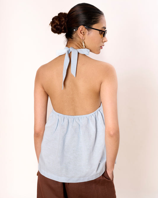 Powder Blue Halter Knot Linen Top