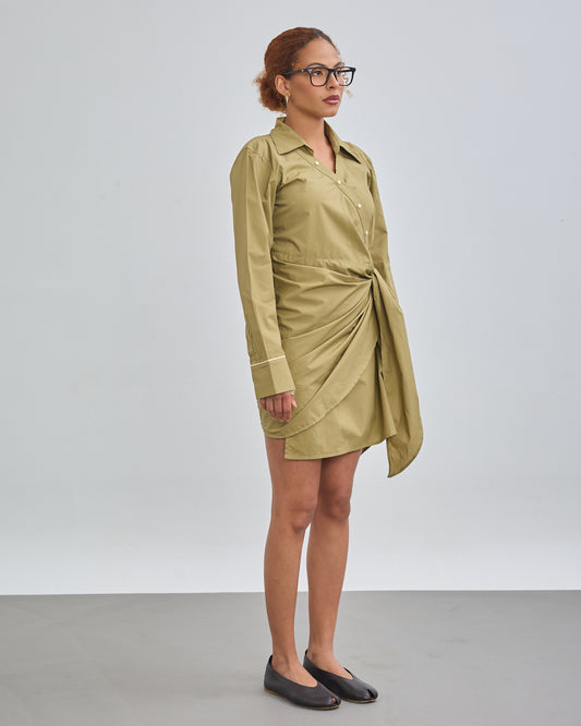 Tie-Wrap Shirt Dress - Olive Green