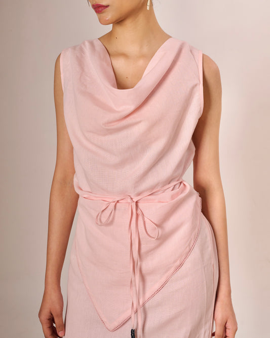 Baby pink Cowl neck Draped Top