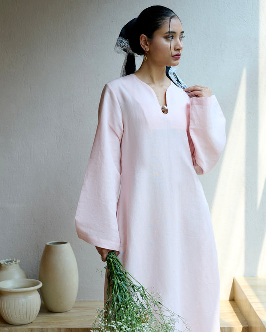 Baby pink Column Long Linen Dress