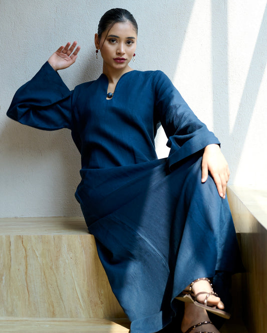 Navy Column Long Linen Dress