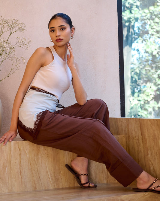 Brown High Waist Pintuck Linen Pants