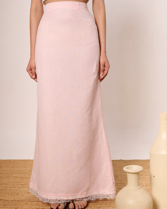 Baby pink linen straight skirt