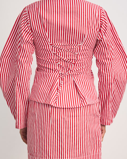 The Fitted Barrel Shirt with a Tie-Back Detail - Red Stripped