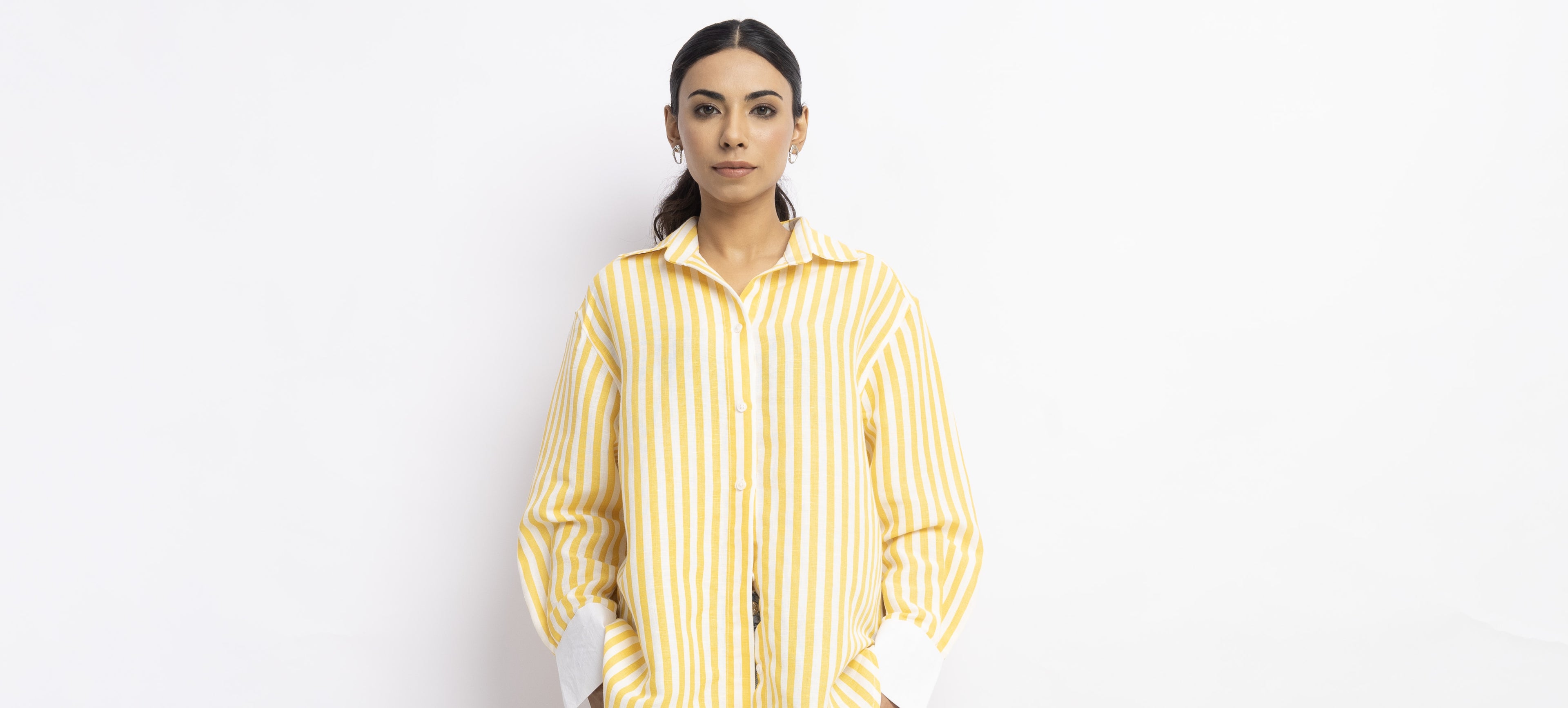 The Accent Asymmetric Shirt - Powder Blue Stripped