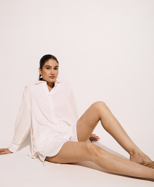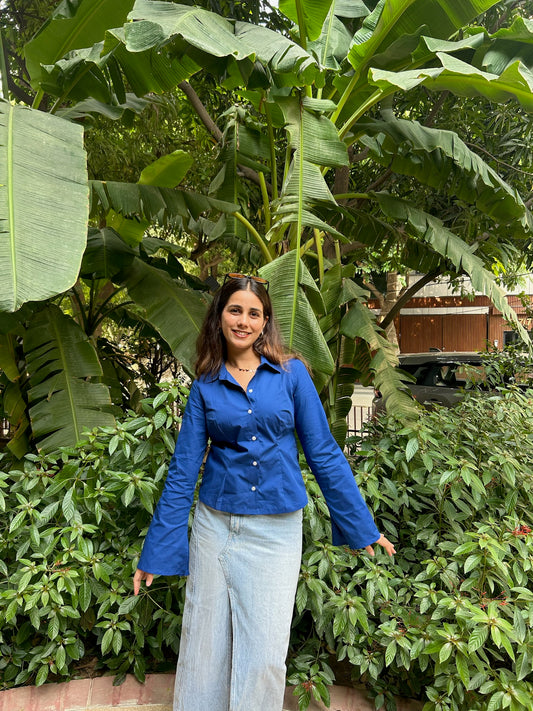 Cobalt Blue Fitted Shirt – Cotton Poplin Shirt with Tie-Back Detail