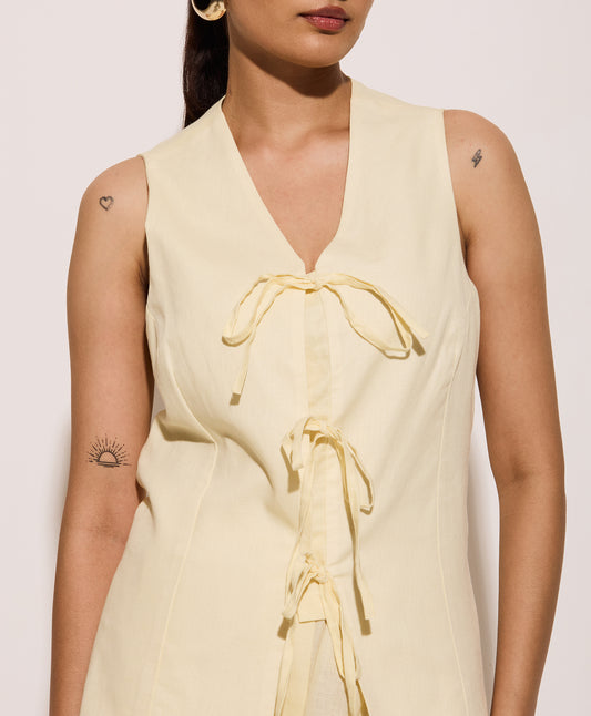Butter Yellow Linen Tie Up Vest and Pants Set