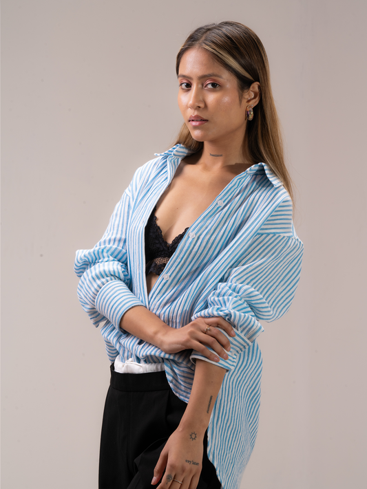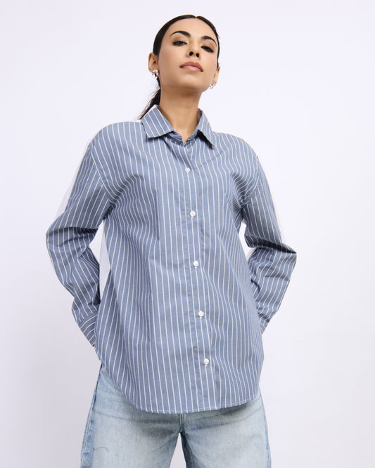 Dual-Tone Pinstripe Relaxed Poplin Shirt