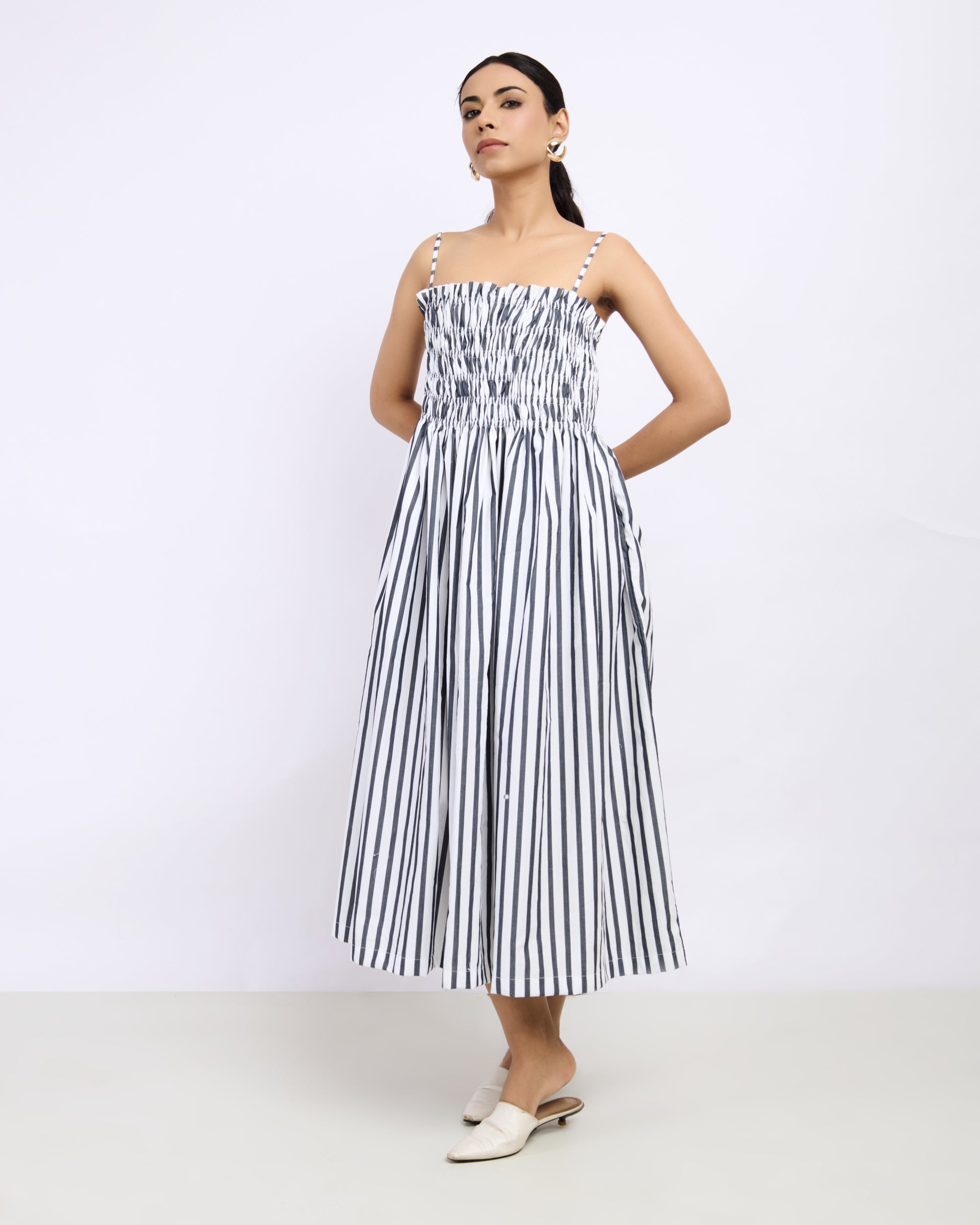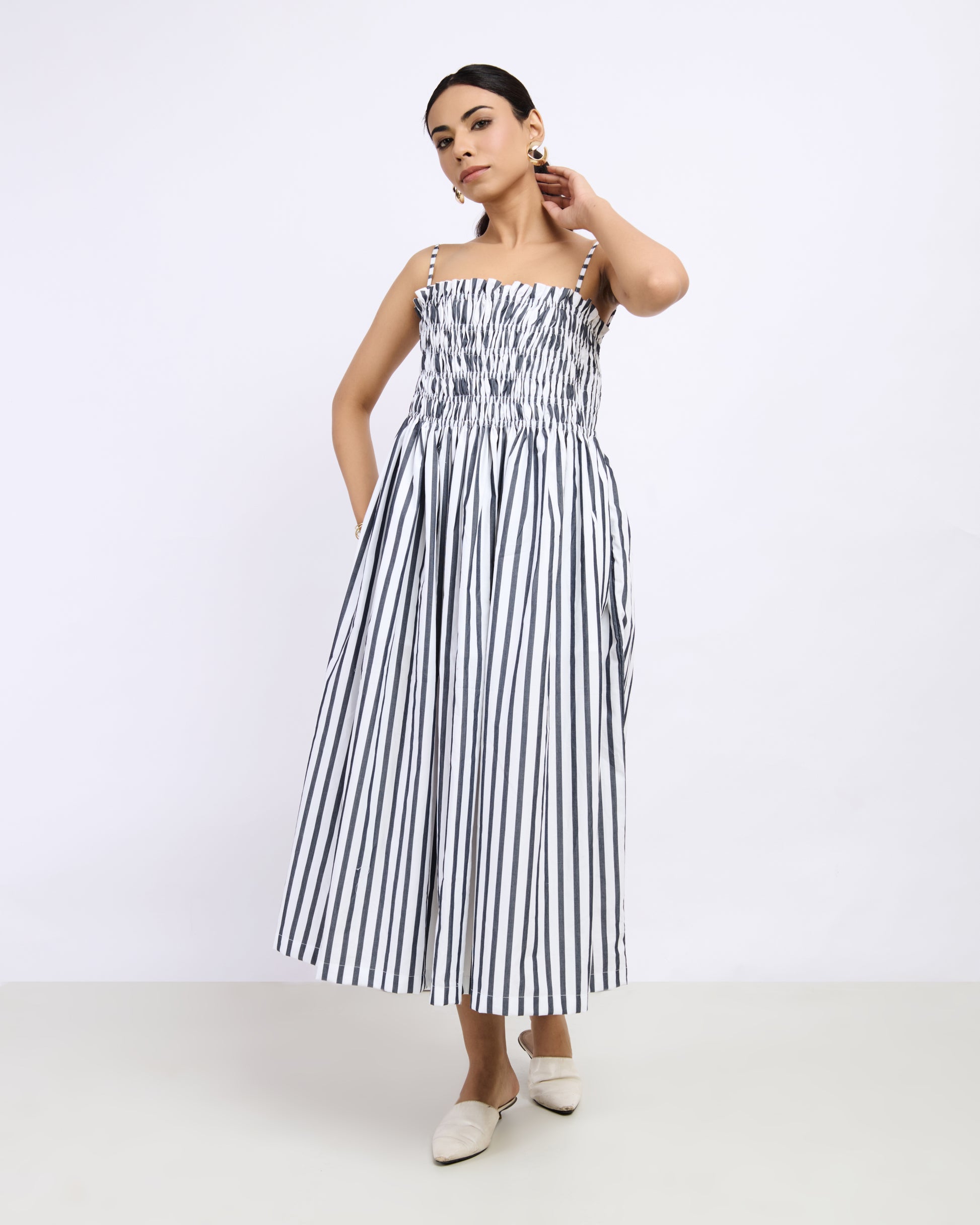 Make a bold yet elegant statement with our Black & White Gathered Smocked Maxi Dress—where comfort meets timeless sophistication. Crafted in a lightweight, breathable cotton blend, this dress is designed to flow with you, offering ease and effortless style.