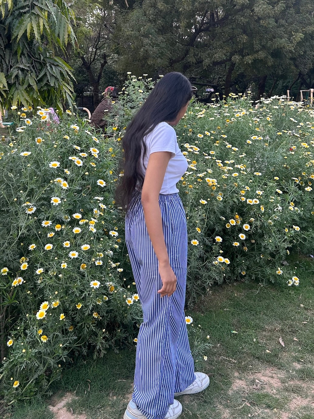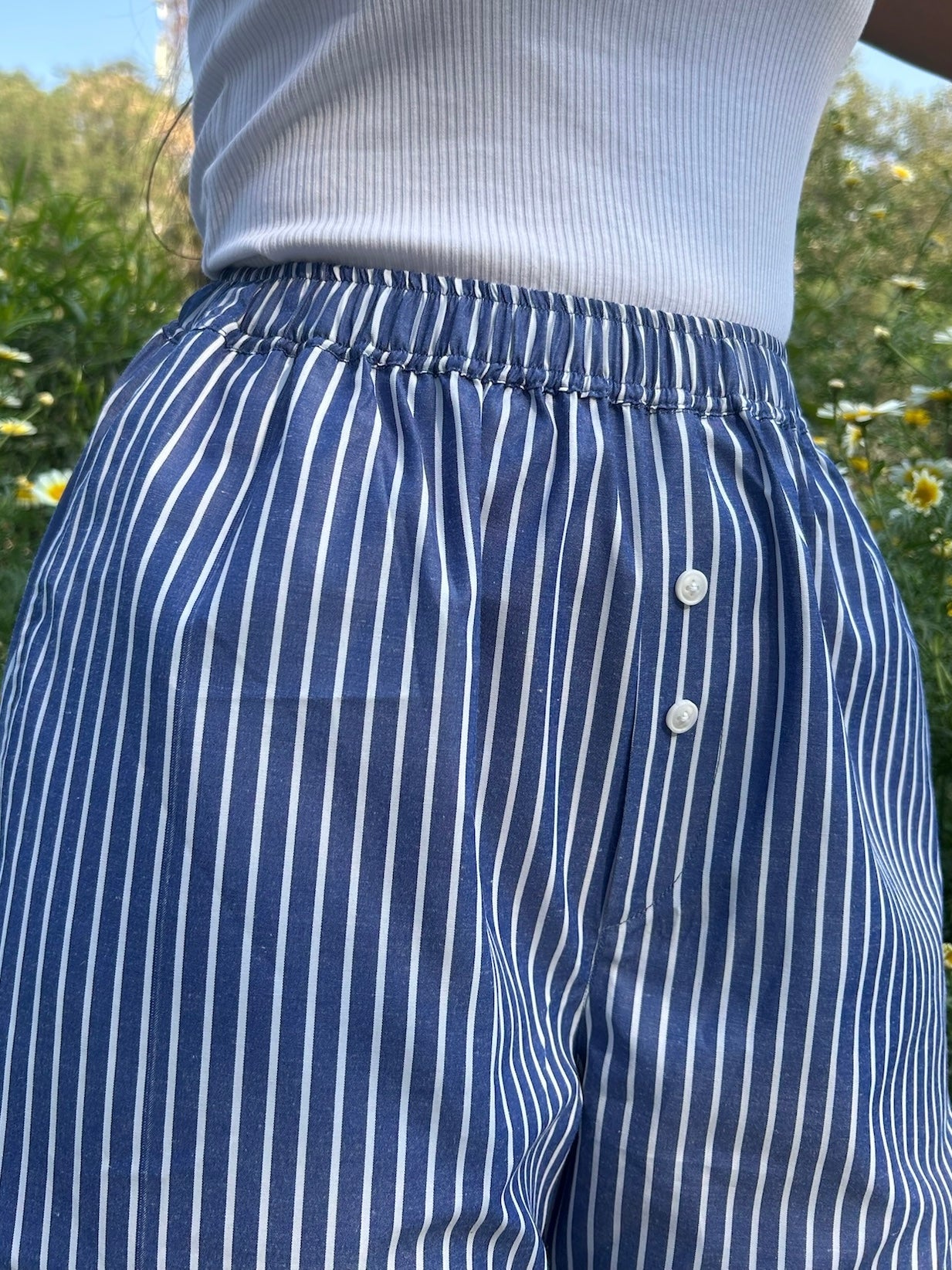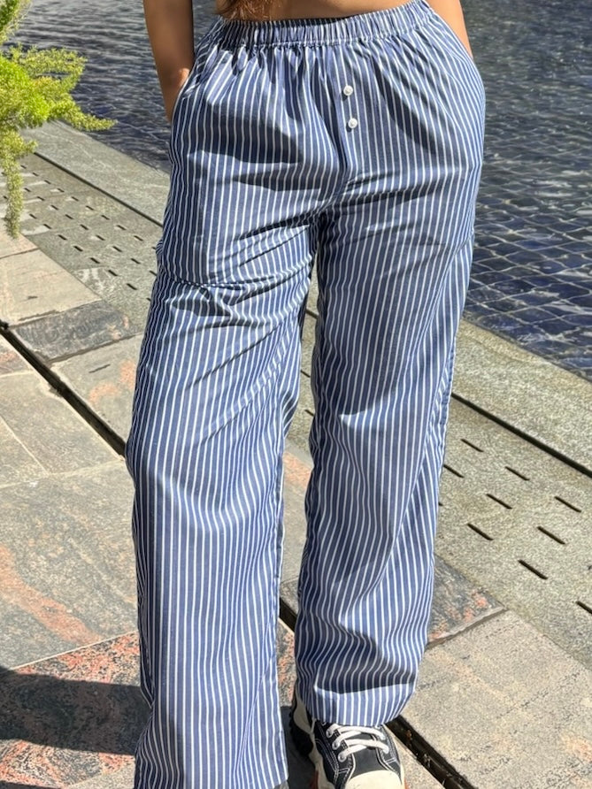 Blue Striped Poplin Pants