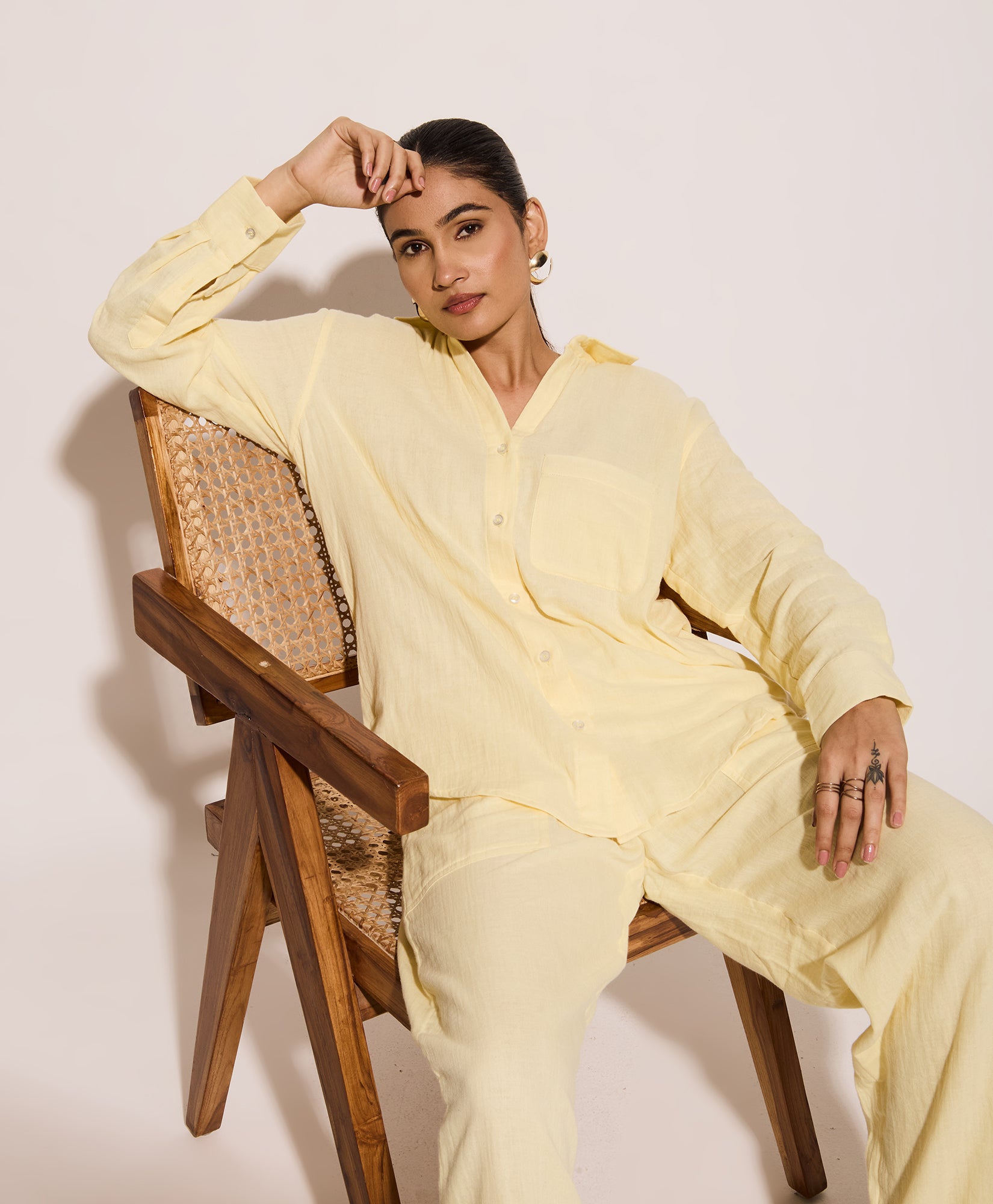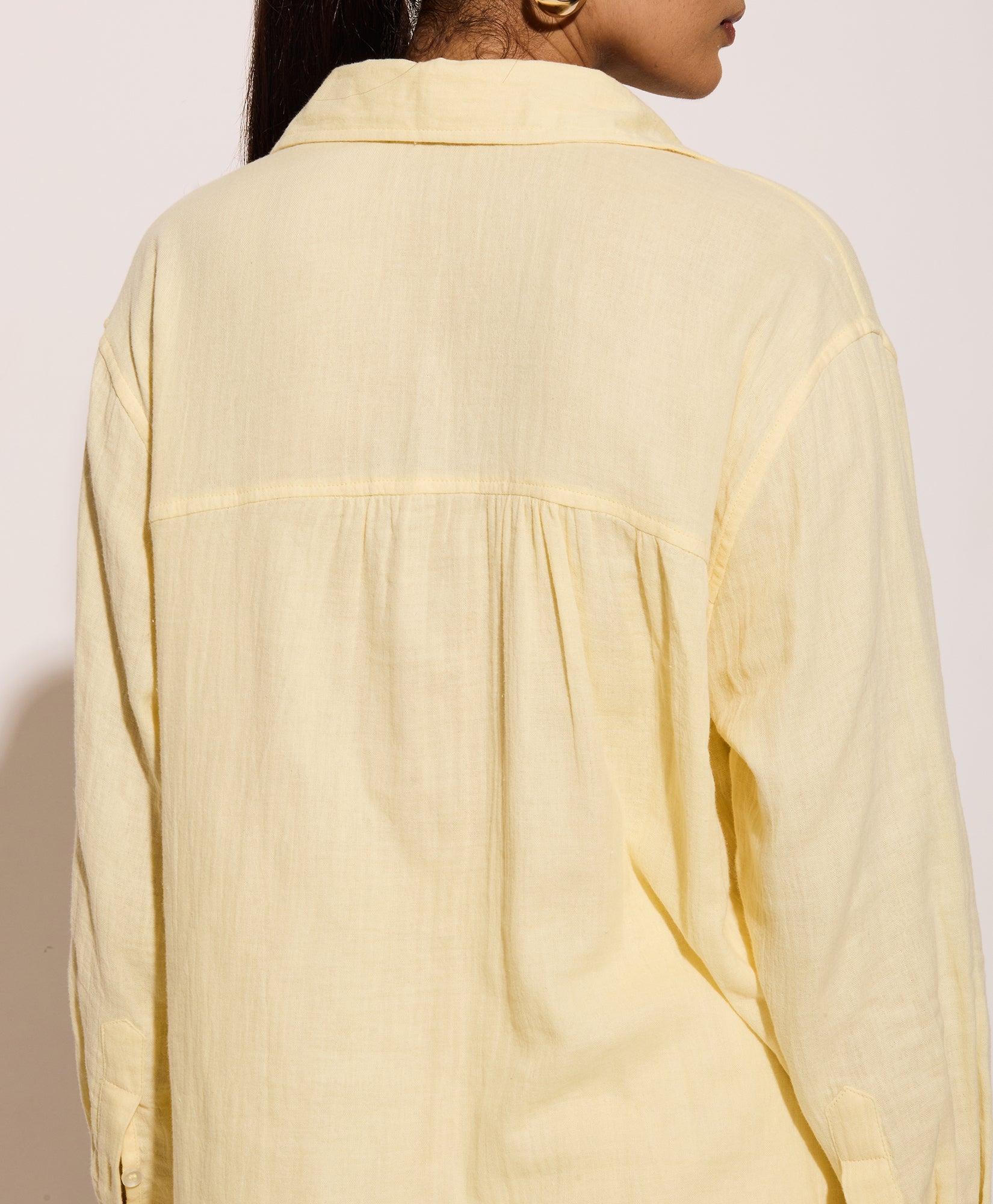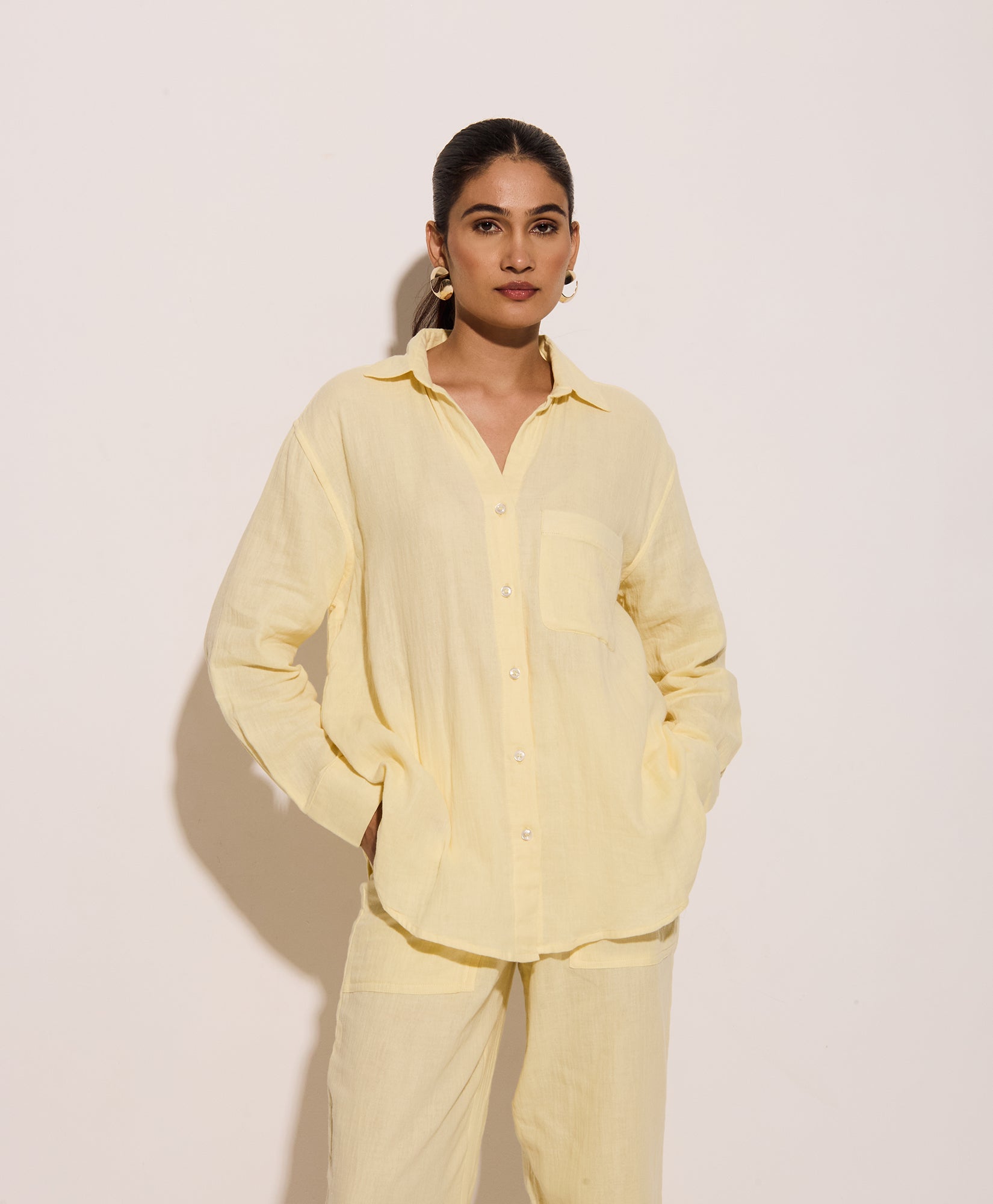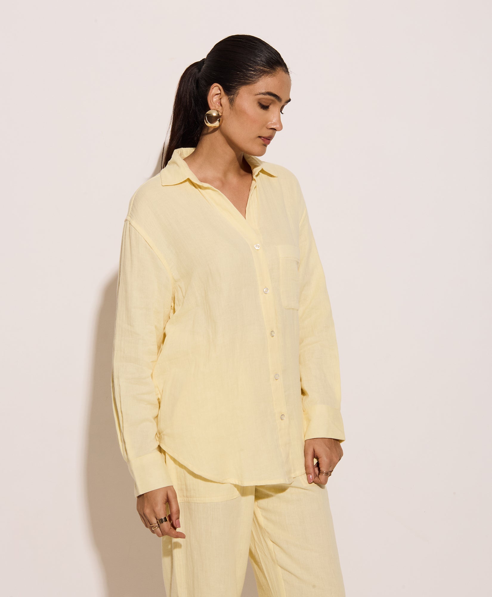 Effortlessly cool and endlessly versatile, our Butter Yellow Cotton Gauged Shirt is the ultimate wardrobe staple for laid-back style. Crafted from premium, breathable fabric with a soft, gauzy texture, this shirt features a relaxed oversized fit that drapes beautifully on every silhouette.