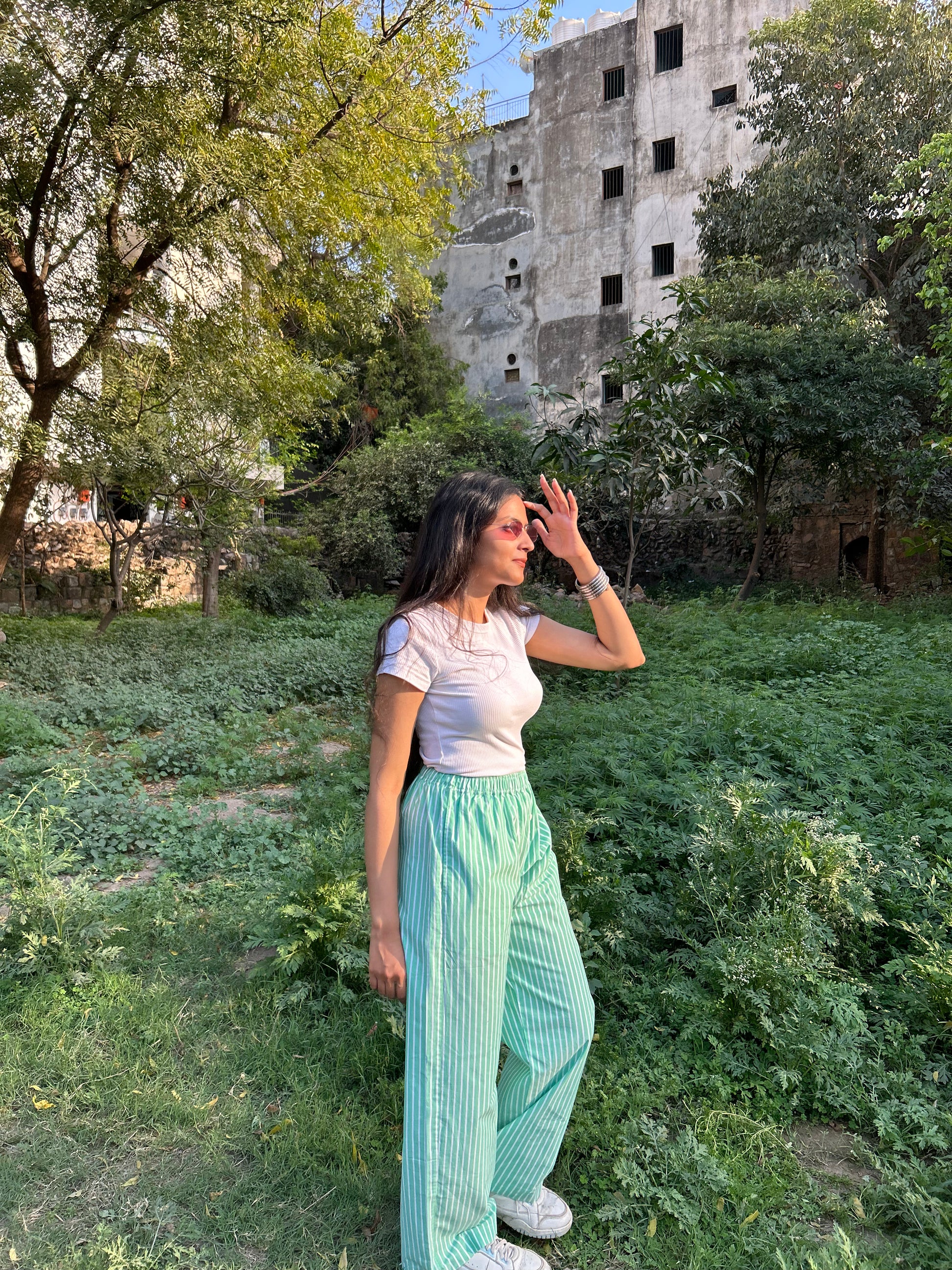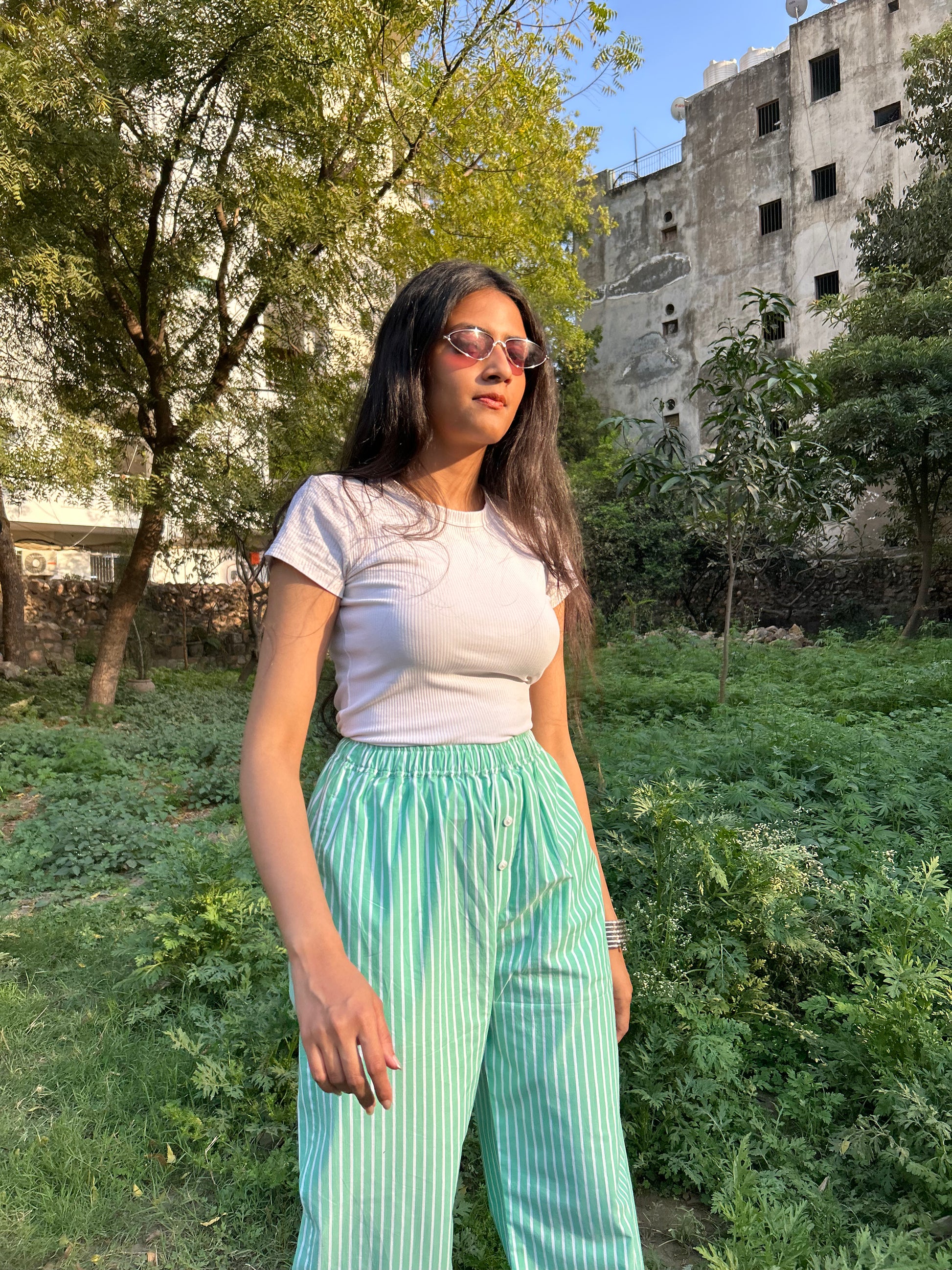 Clean, effortless, and endlessly wearable — these Green Poplin Pants bring a touch of elegance to everyday ease. Crafted from breathable cotton, they feature a pleated front for a tailored look and an elasticated back for all-day comfort. The relaxed straight-leg silhouette moves with you, making them perfect for everything from weekend errands to breezy vacations. Crisp, lightweight, and timeless — these pants are made to live in.