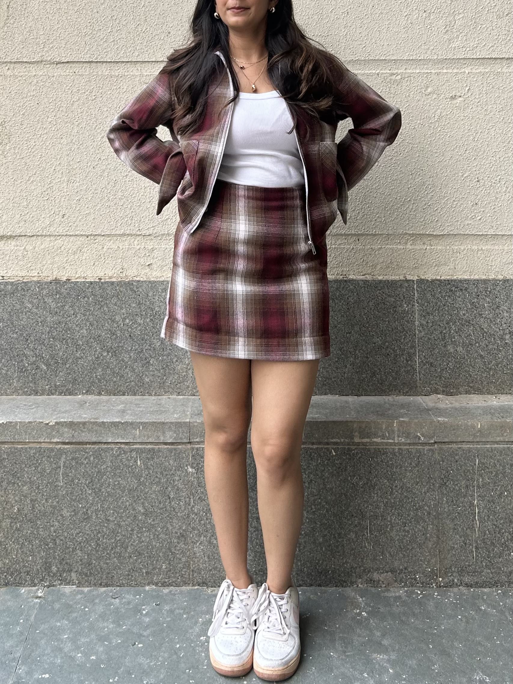 Strike the perfect balance between style and comfort with this Maroon Plaid Skirt.