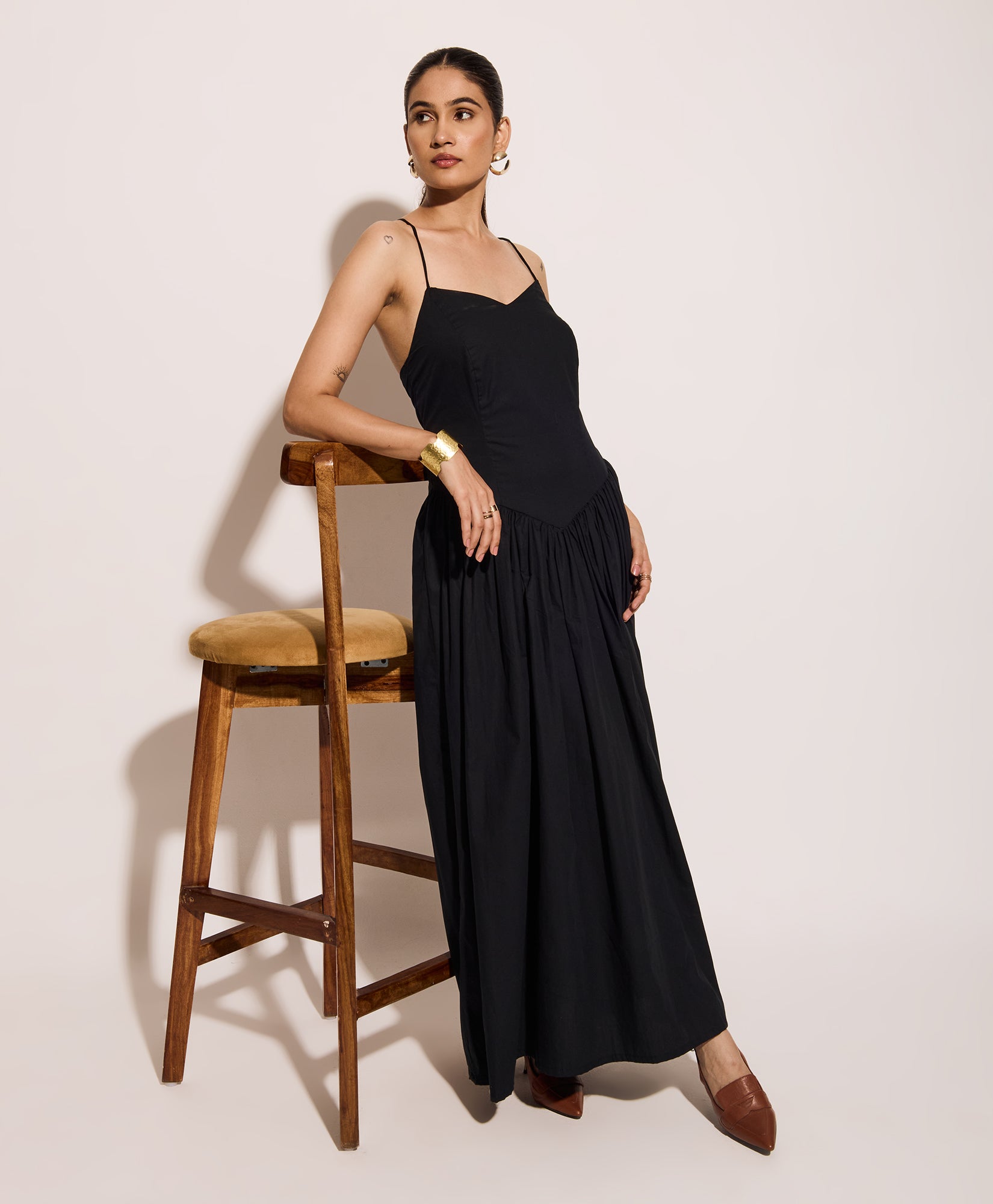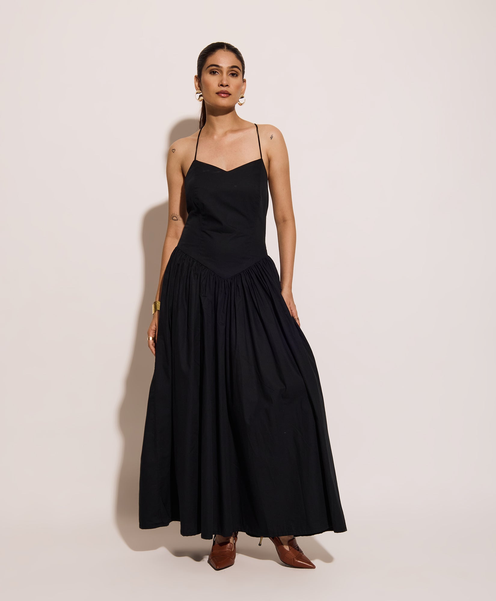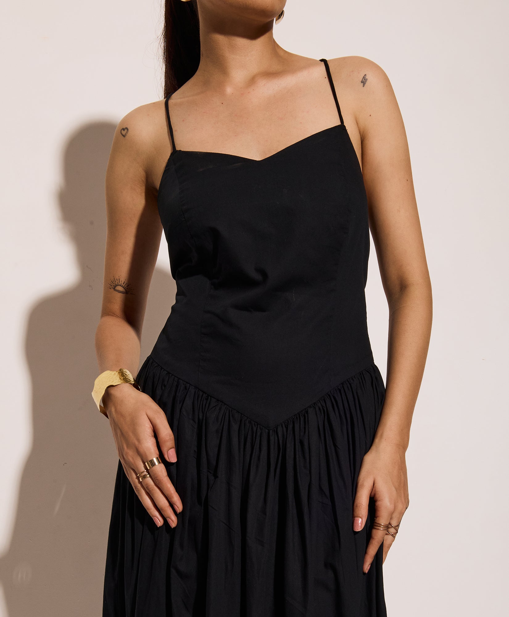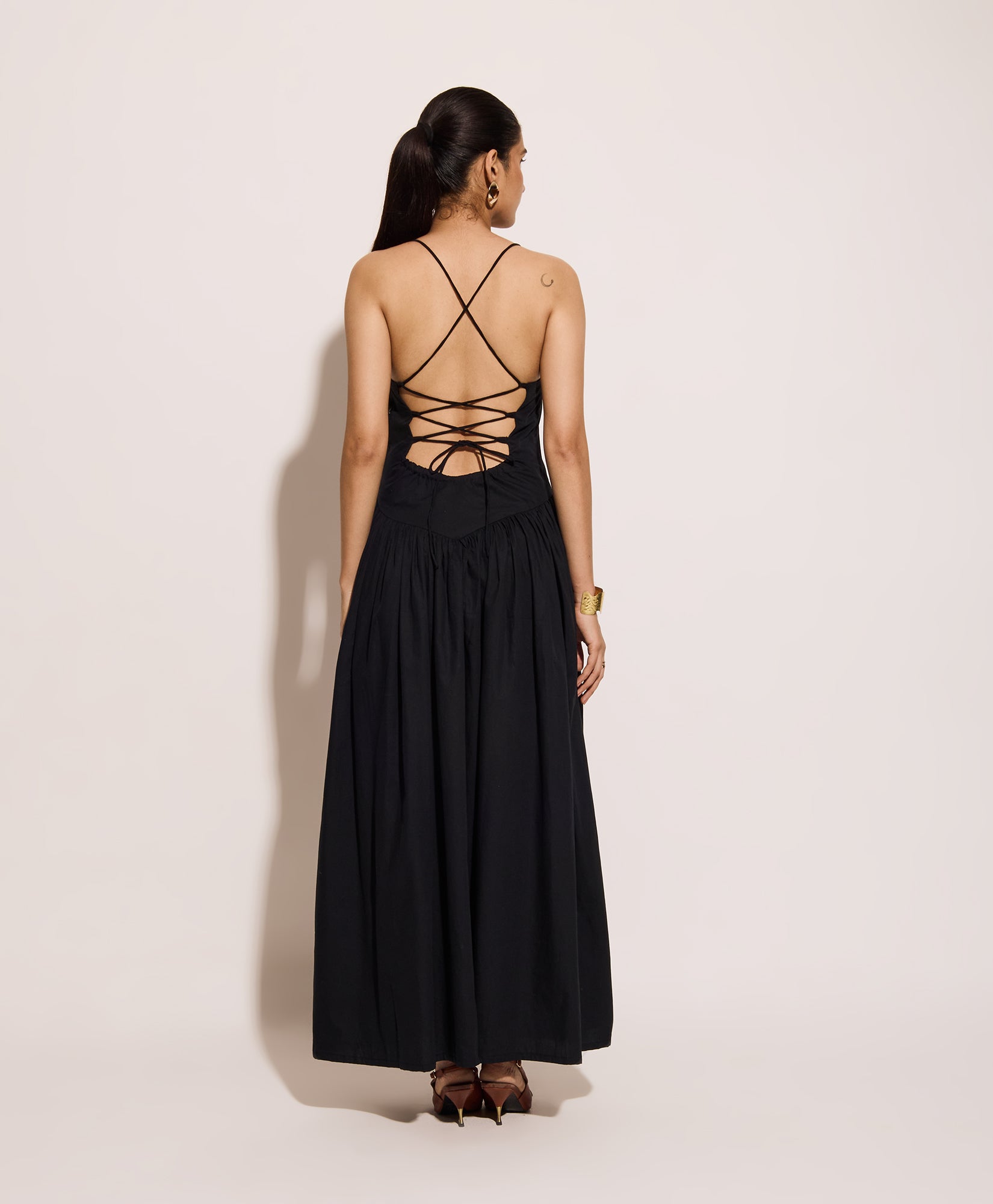 Midnight Black corset dress with a soft, flared silhouette and lace-up back. Designed for vacation days, this lightweight maxi dress is perfect for summer getaways, beach evenings, and resort wear. Adjustable spaghetti straps ensure a custom fit for relaxed holiday style and effortless elegance