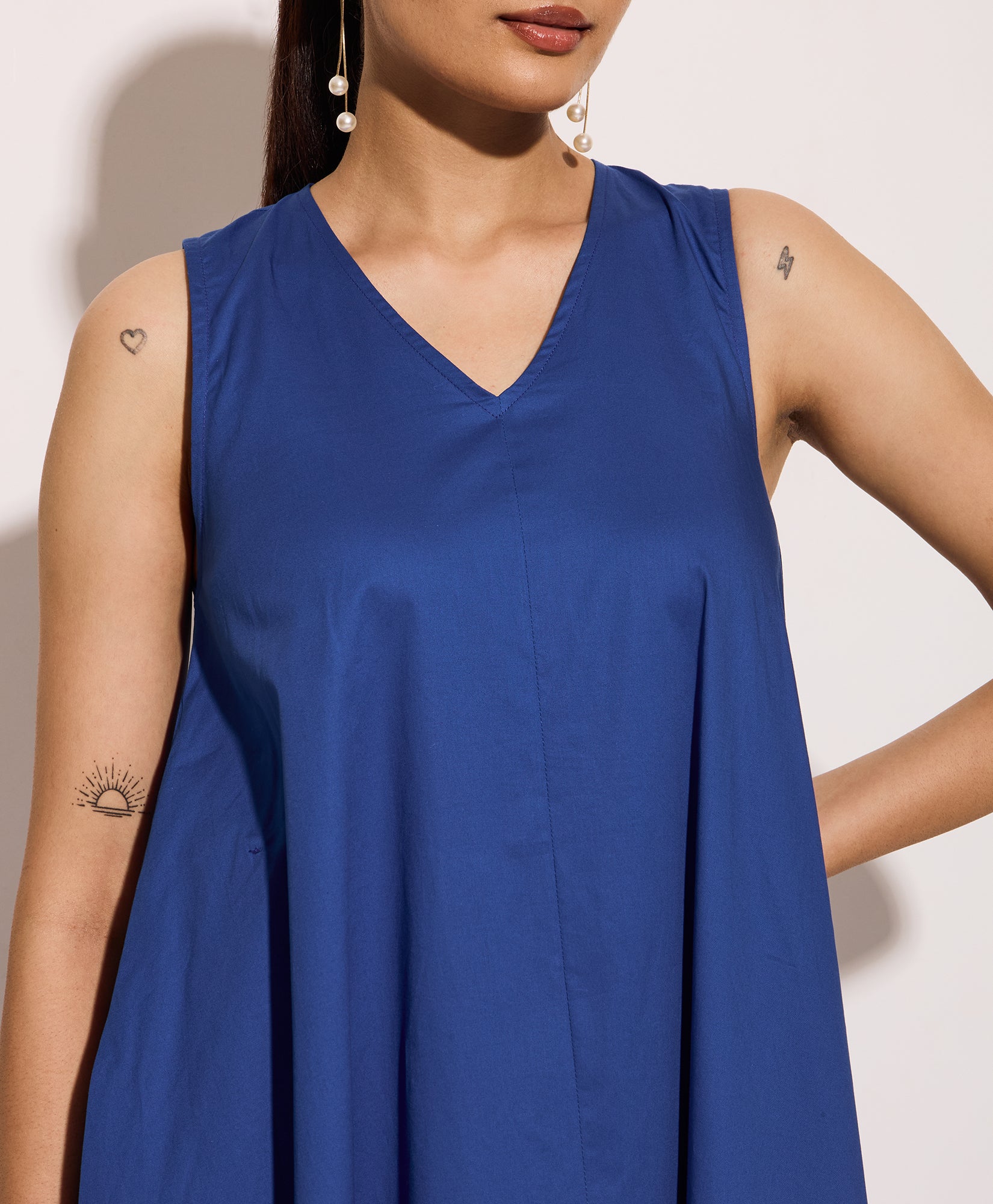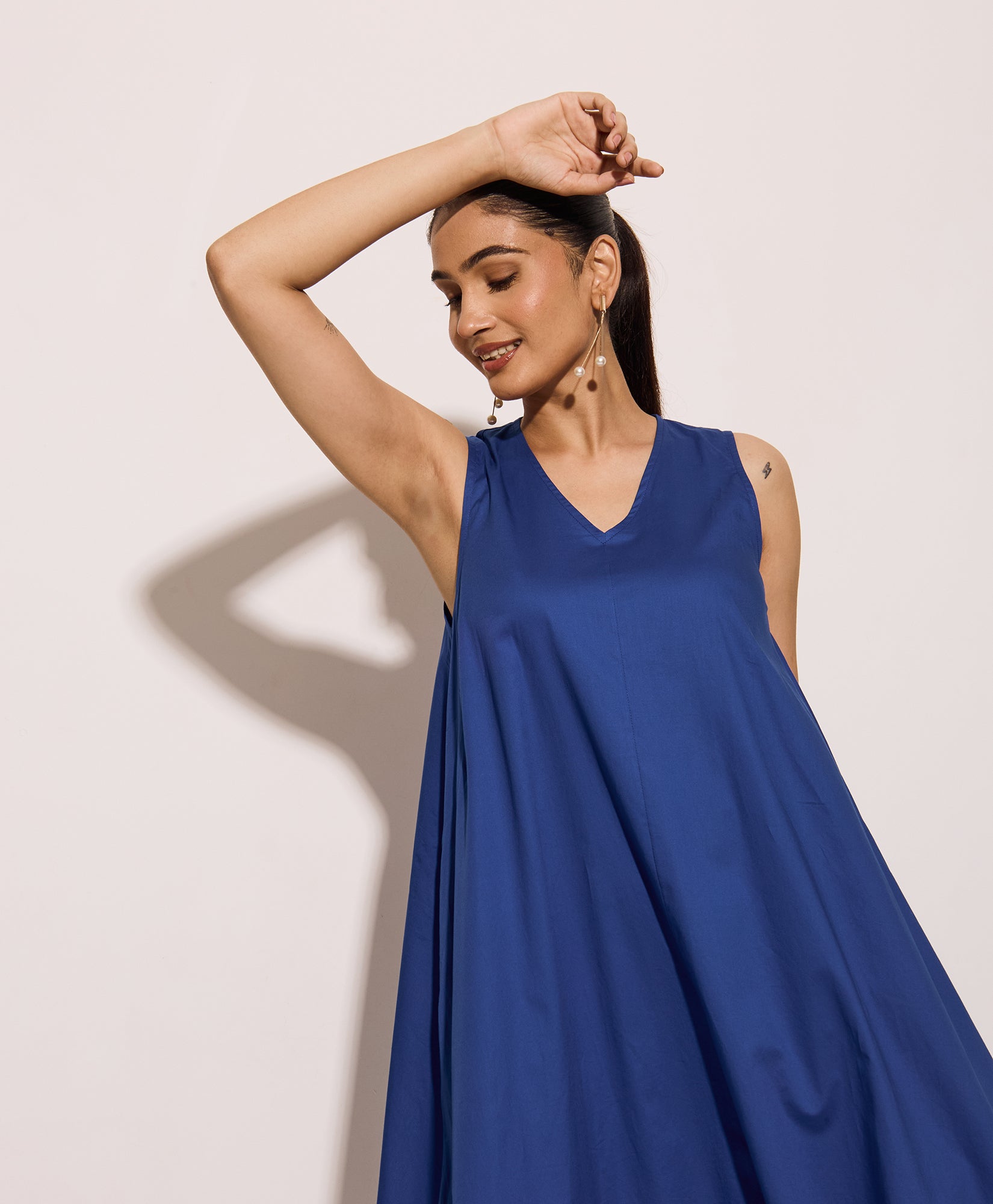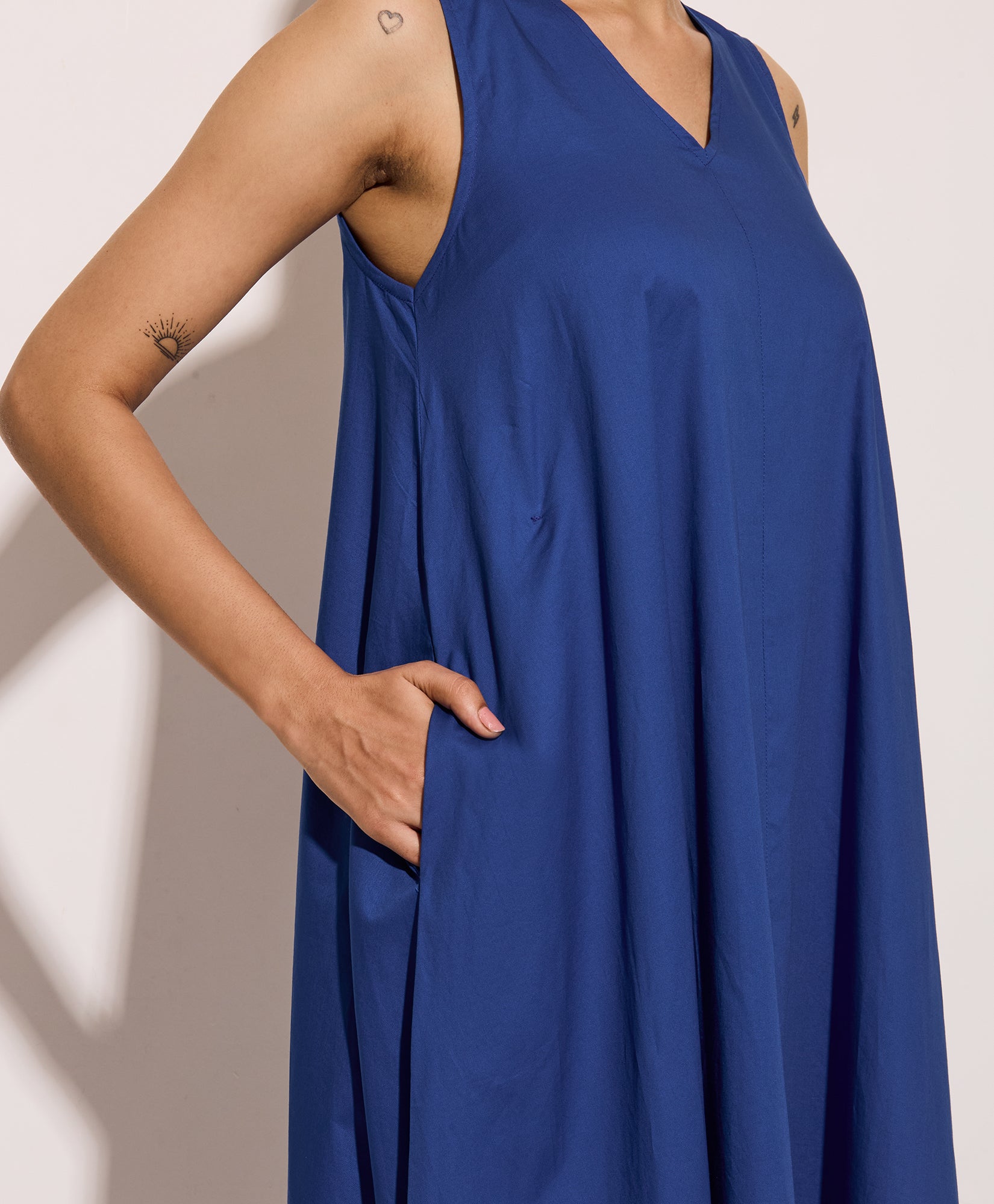 Royal Blue Cotton Poplin Long Swing Dress