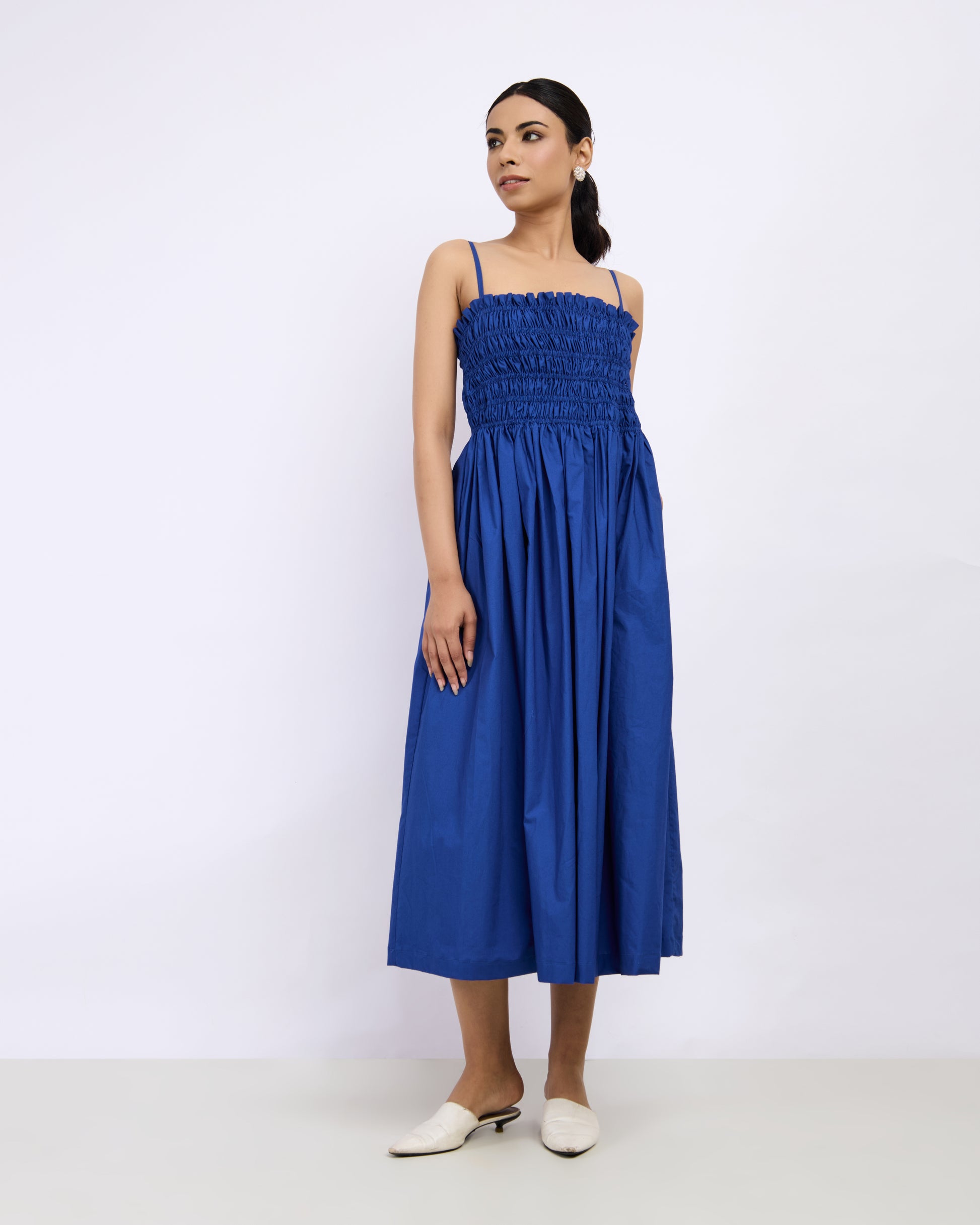 Make a bold yet elegant statement with our Royal Blue Gathered Smocked Maxi Dress—where comfort meets timeless sophistication. Crafted in a lightweight, breathable cotton blend, this dress is designed to flow with you, offering ease and effortless style.