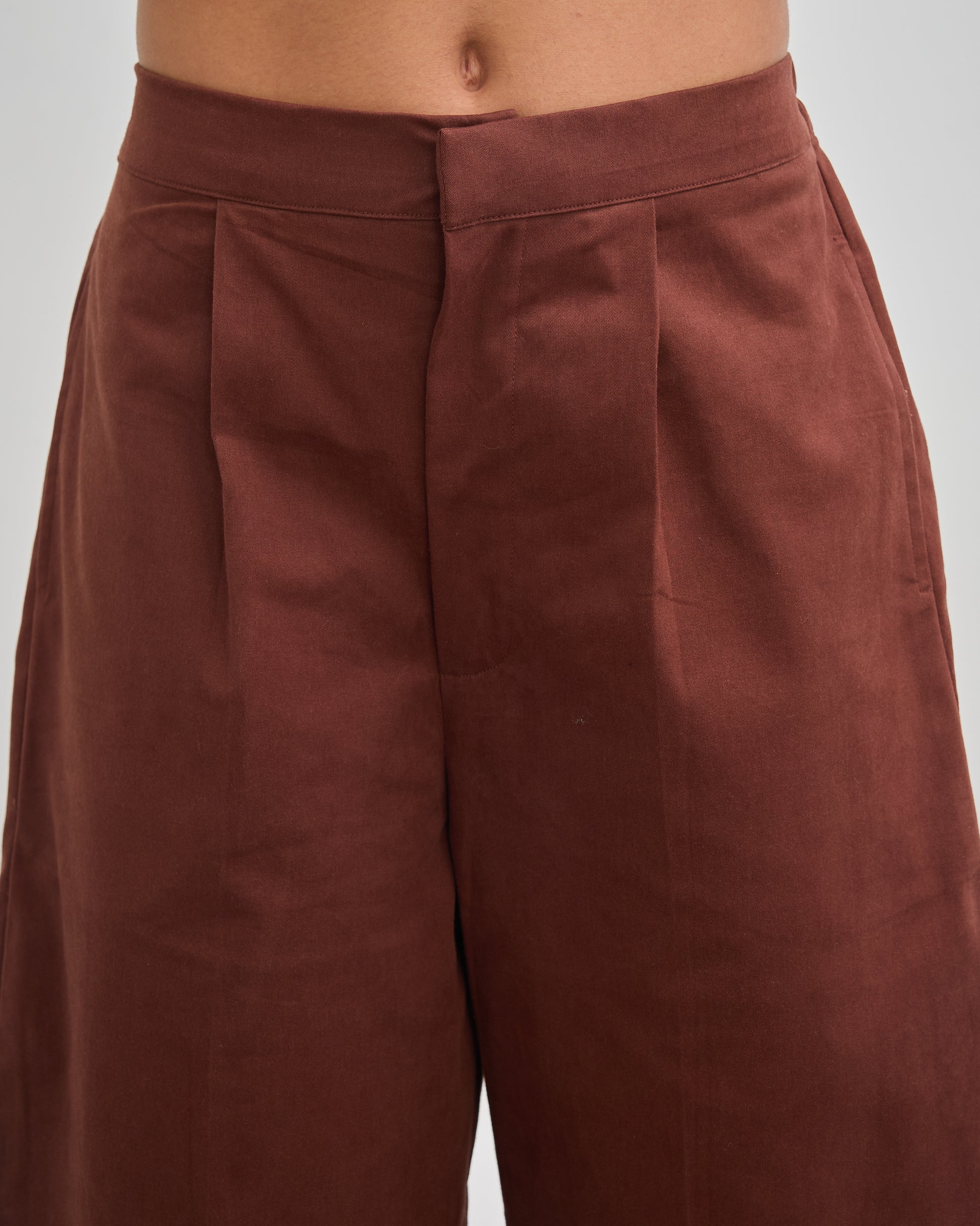 Product Details • Fabric: Cotton Lycra twill • Fit: High-waist tailored fit • Silhouette: Signature arc barrel leg with soft taper • Stretch: Moderate stretch for comfort and shape retention • Length: Full length • Style: Workwear, power dressing, elevated everyday wear |