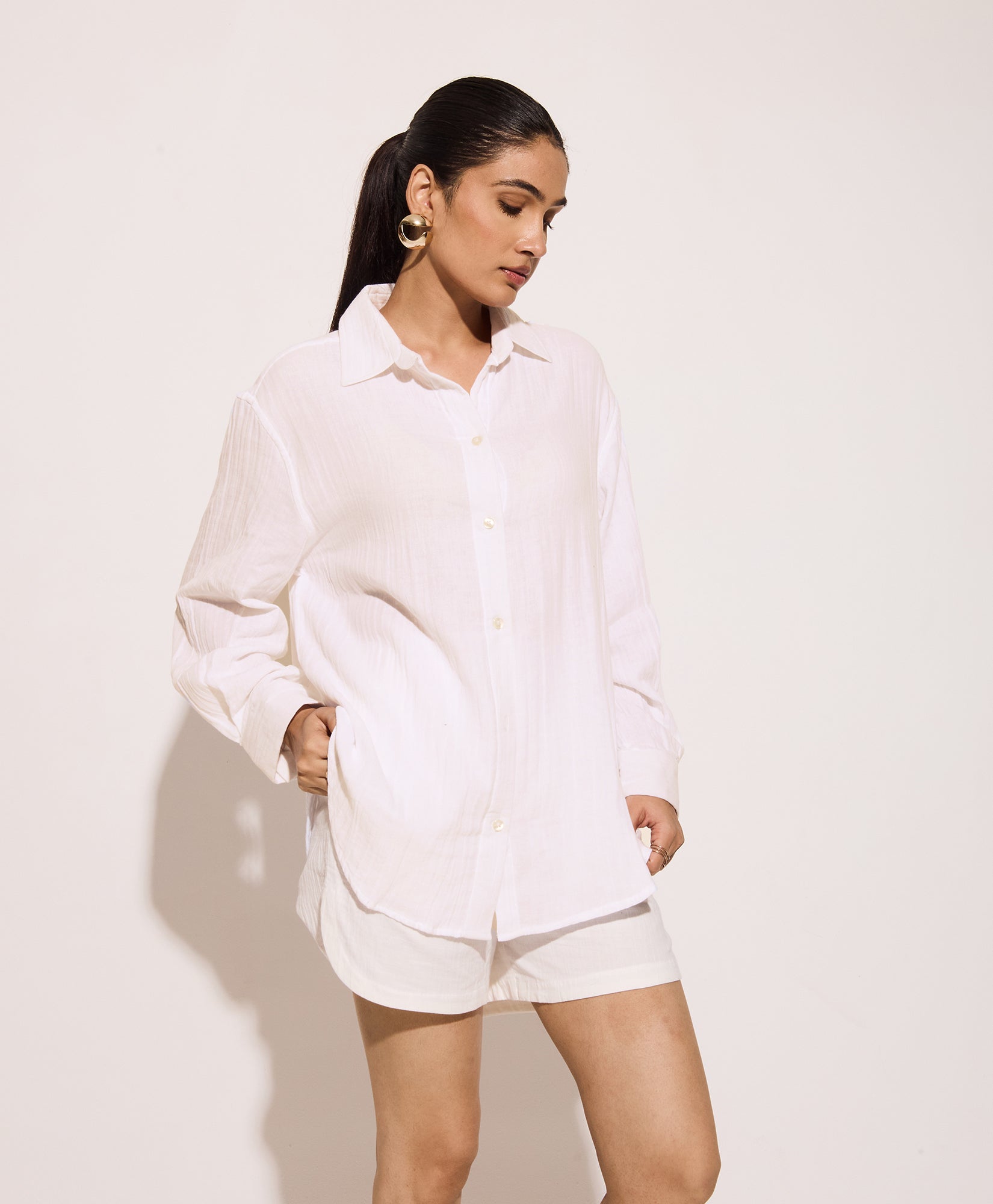 A staple with a sharp edge, these White Gauged Shorts are crafted for warm-weather ease with a tailored silhouette. Made from breathable cotton gauged, they offer a structured yet lightweight fit that transitions effortlessly from day to night. Whether paired with a tucked-in shirt or a relaxed tee, these shorts deliver comfort with clean lines and timeless appeal. The soft fabric just slides.