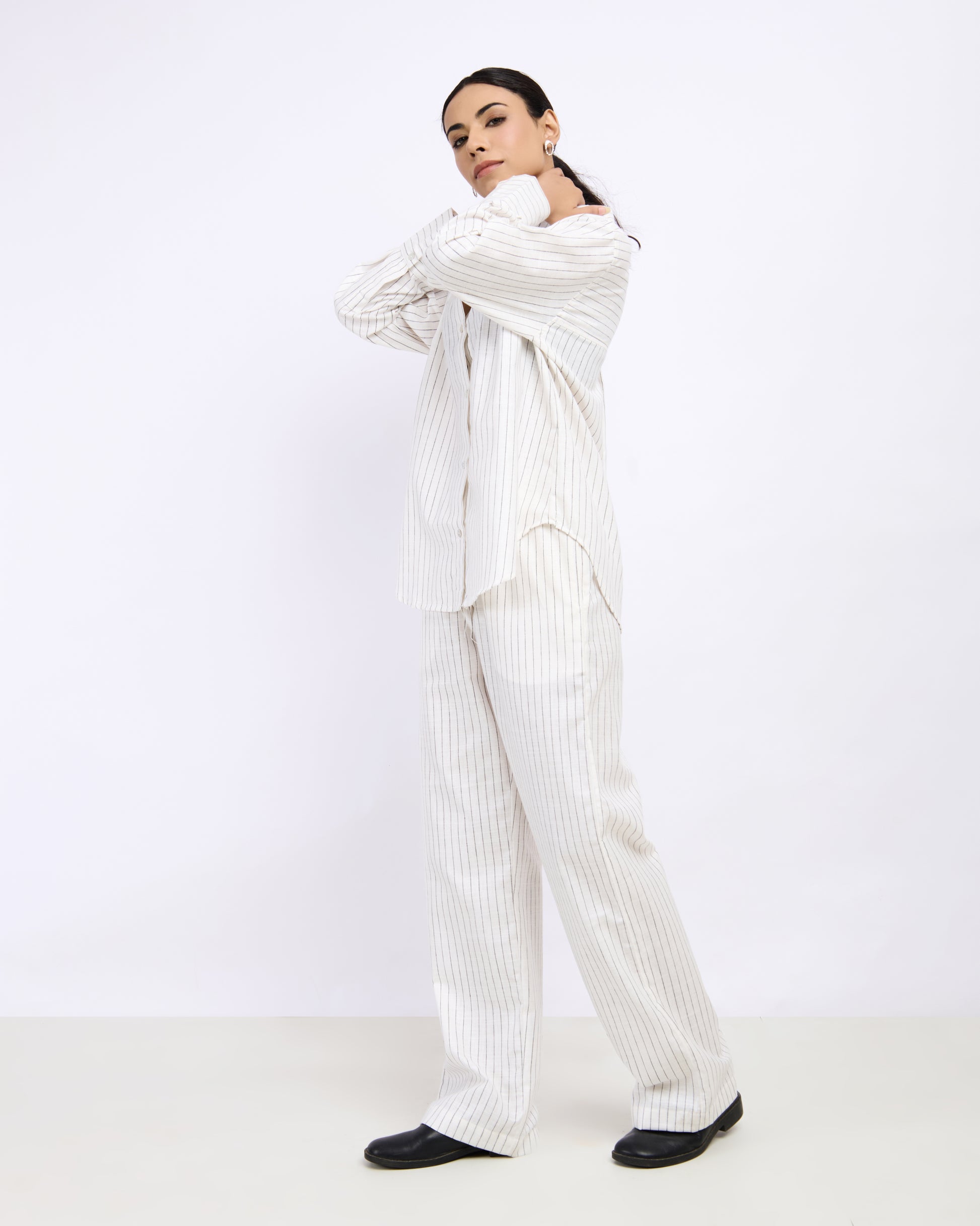 White Pin Striped Linen Shirt – Oversized Relaxed Fit