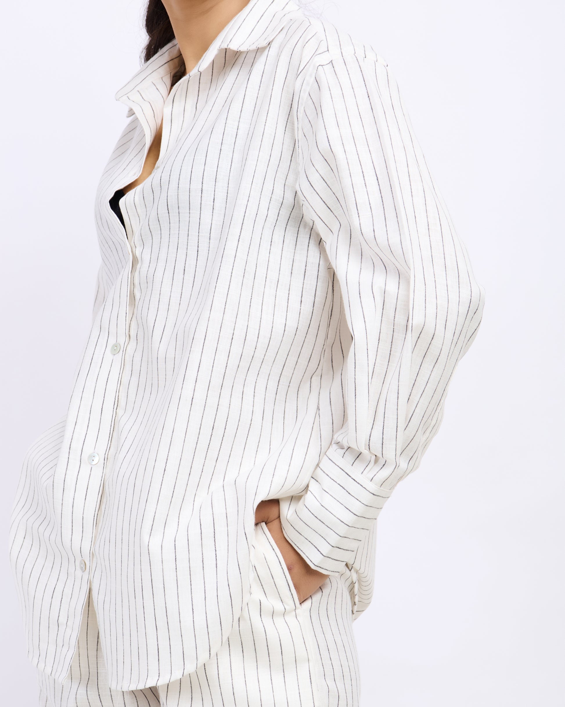 White Pin Striped Linen Shirt
